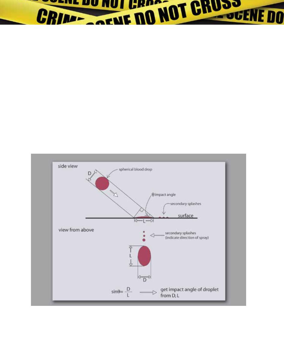 changes from 90°, the spatter stains become more elongated. Calculations